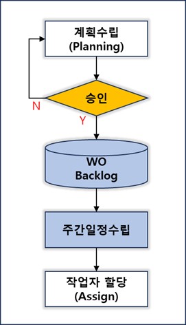 일정 수립이란 주간 일정수립은 WO 백로그 중 차주에 해야 할 작업을 금주에 확정하는 스케줄링 업무입니다. 즉
